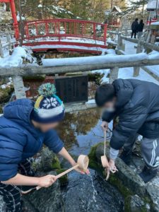 手水舎で手もしっかり清めました✨この日は-7℃🥶