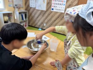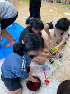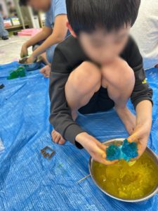 寒天をちぎって混ぜてみたり、他の生徒さんと色を混ぜてみたりと不思議な感触を楽しみました。