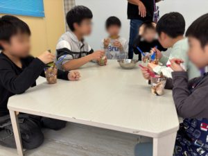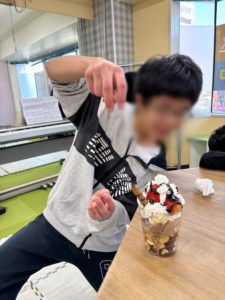 この日は天気が良く、お外遊びをした後だったので冷たいパフェに癒されていました😊