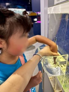 ヒトの角質を食べてくれるドクターフィッシュに、職員の手を借りてふれ合うお友達も😌