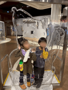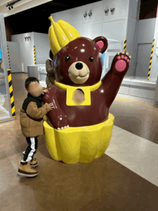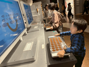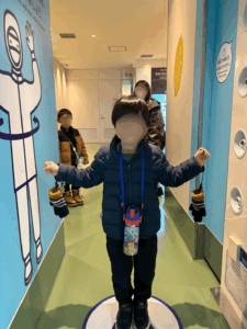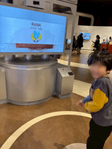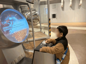 次は工場コーナー・ゲームコーナーへ!バーチャルで工場のスタッフさんの服装に変身し、エアシャワーを浴びていざ出陣です🔥