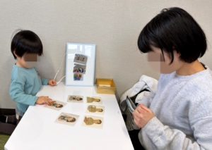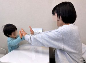 ”切る”はどんな動作なのか、などの理解が深まるほか、実際に言語聴覚士の真似をしてお話しもしてみることで、日常の会話にも繋がります✨