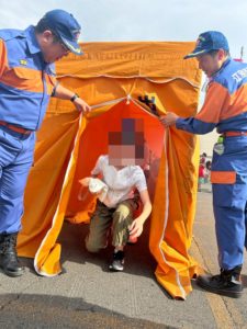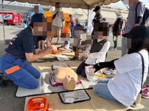 隊員の方に教えてもらいながら上手に心臓マッサージの方法を学べましたね!