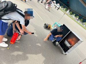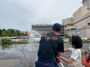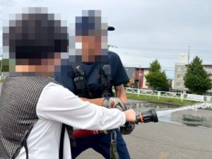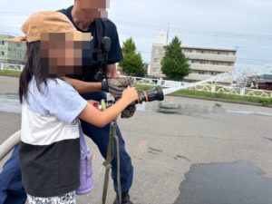 隊員さんのお手伝いもありながら、消火活動できました!