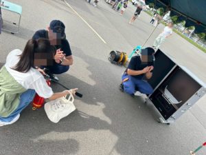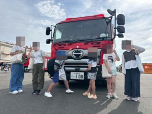 到着すると早速、消防車が見え興奮しています!今回はスタンプラリーの用紙が大好評につき早くも配布終了となってしまってできませんでした😢