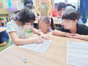 落下物の危険を考えた生徒さんが非常に多かったので、次回はそらいろ内での危険な場所やどのようなもので身を守れるか、またどんな姿勢で揺れがおさまるまで待ったら良いかも併せて再度検討していきたいと思います。