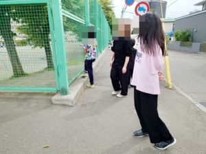 そらいろの生徒さんが多く通われている学校という事もあり、近所に住んでいる生徒さんは大地震が起きたら家族と一緒にこのルートで逃げると話している子もいました。ただ歩くだけではなく事業所から避難場所までどんな危険があるかを考えながらみんなで確認していきます。