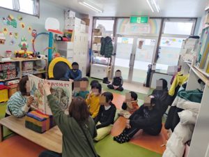 図書館で借りてきた紙芝居をみんなで読み聞かせ👂