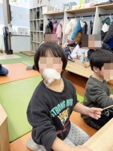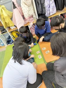 カルタは学年に合わせたグループに分かれ札を多く取れた子から好きなお菓子が選べるというご褒美が待っていました👐