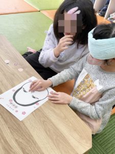 お正月の伝統的な遊びの一つである福笑いをしました。